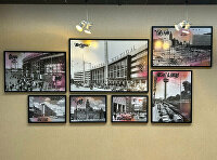 During their team outing, we hung the new custom artwork in their beautiful office on Coolsingel. Anne Pien created the base and had the art prints of Einstein and Muhammad Ali printed directly onto brushed aluminum in a warm bronze hue! Then our Timo got to work on his graffiti art. Finally, Ginvi's beautiful epoxy coating over the artwork makes the rebellious colors shine!