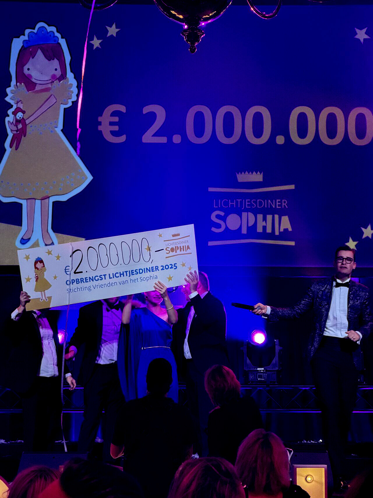 Als laatste veilingitem van de avond werd het Sophia SuperHero beeldje gepresenteerd. Het moment was indrukwekkend: maar liefst 20 handen gingen de lucht in. De uiteindelijke opbrengst van de beeldjes bedroeg een ongelooflijke €150.000, een resultaat waar wij enorm trots op zijn!
