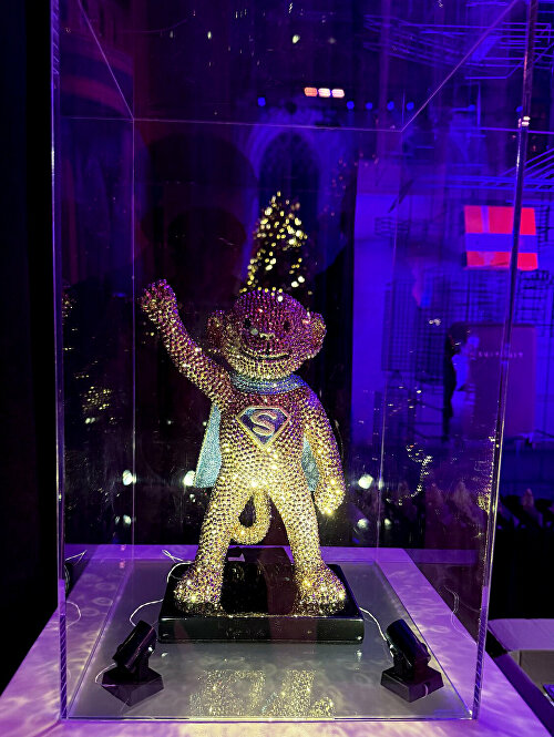 Het beeldje werd volledig met de hand ingelegd met circa 5.200 Swarovski kristallen, één voor één verlijmd, zorgvuldig uitgevoerd in lichtblauw en rosé goud. Een intensief maar liefdevol proces, met als resultaat een schitterend kunstobject met een diepe emotionele waarde.