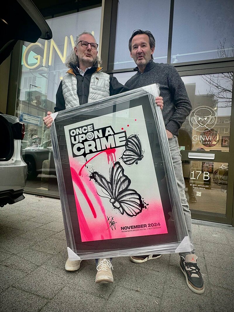 Inmiddels niet alleen een gewaardeerde klant, maar ook een fijne vriend van ons geworden. Deze keer mochten we een bijzondere inlijsting verzorgen van één van de posters van Jeej's ONCE UPON A CRIME expositie. De zwevende inlijsting op zwarte achtergrond zorgt voor een magisch effect, waardoor de poster nog meer tot zijn recht komt.
