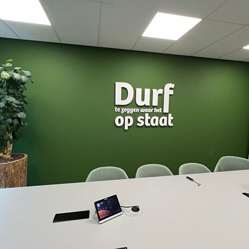 In acrylaat freesletters prijkt een motiverende quote aan de muur, perfect om ideeën te laten stromen tijdens elk overleg.
